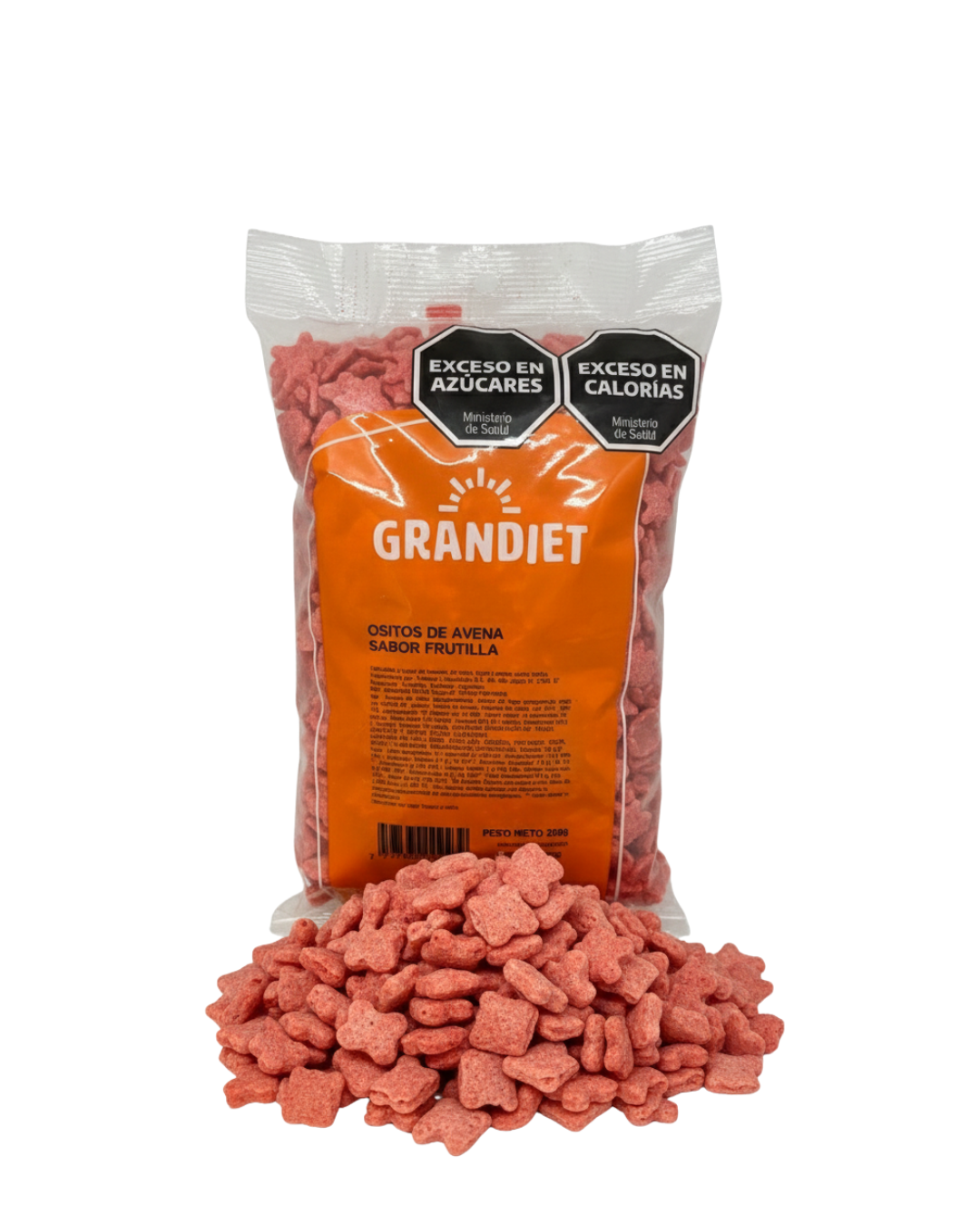 Ositos de avena sabor frutilla elaborados con ingredientes seleccionados para ofrecer un cereal sabroso, nutritivo y fácil de disfrutar en cualquier momento del día. Producto libre de gluten según presentación.
